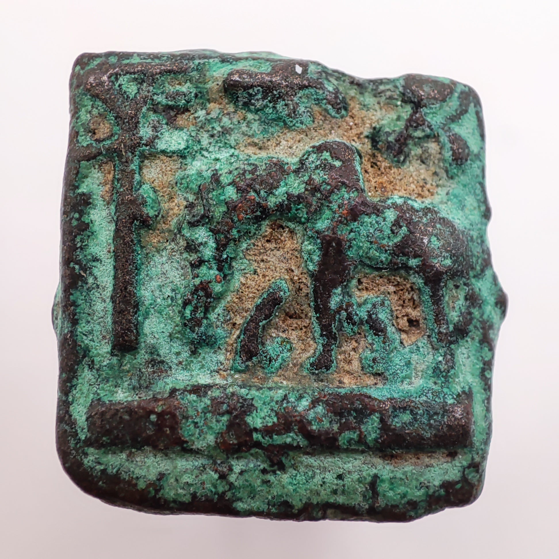 Reverse: Cross left, Chaitya (Buddhist stupa), railed tree