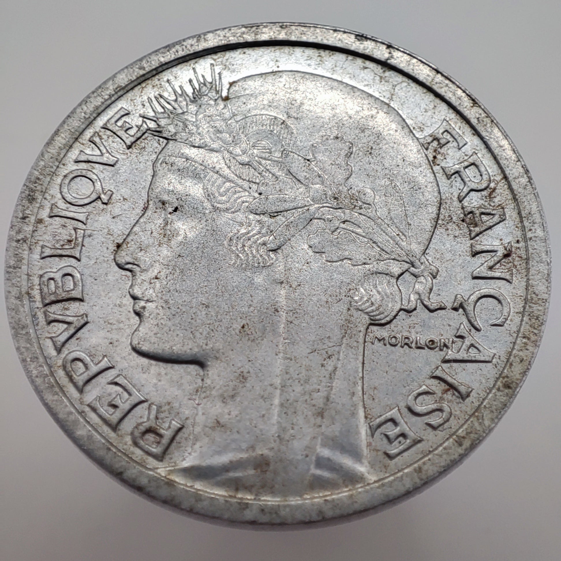 Wreathed female head facing left, lettering around edge both sides, engraver's name behind head