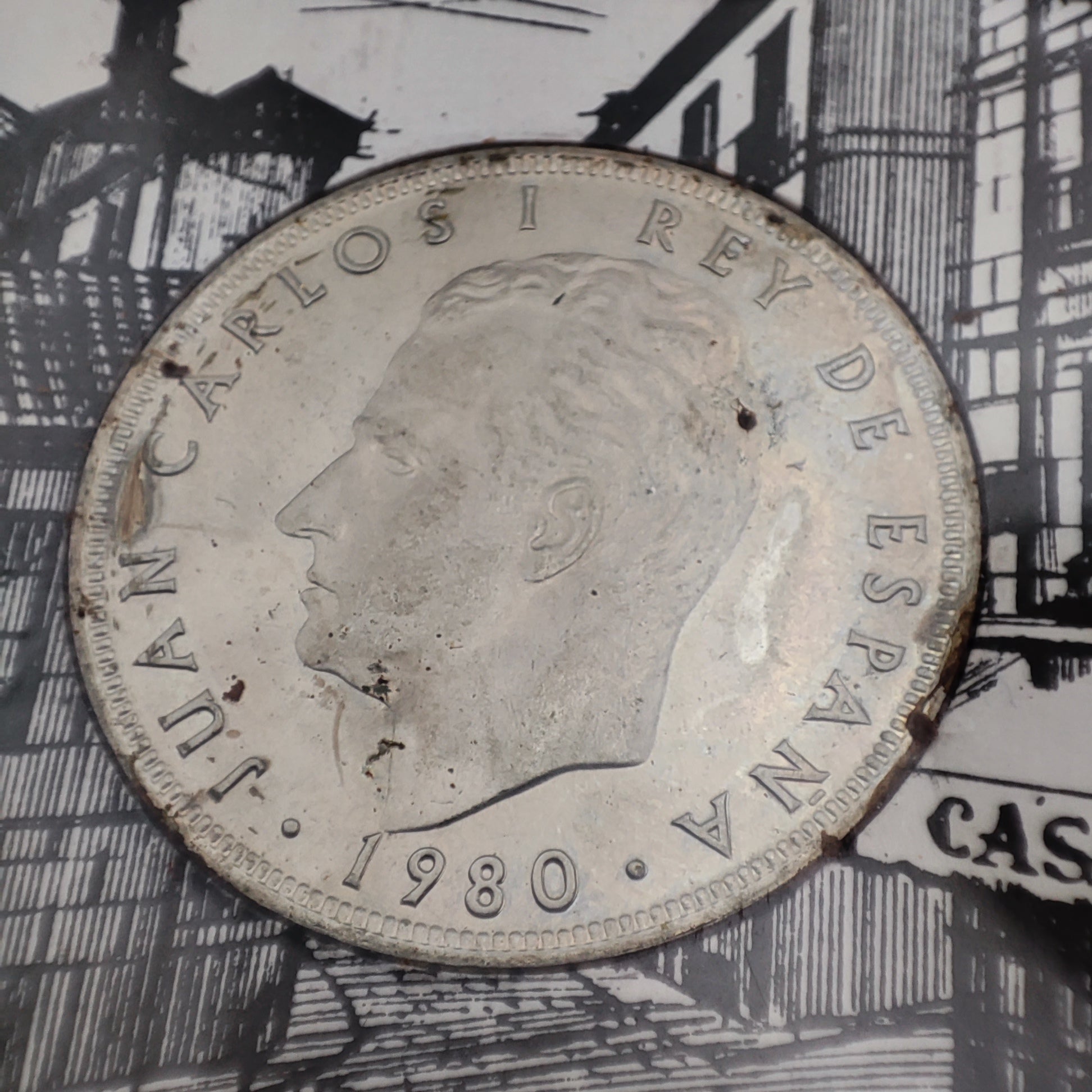 Head of King Juan Carlos I facing left.