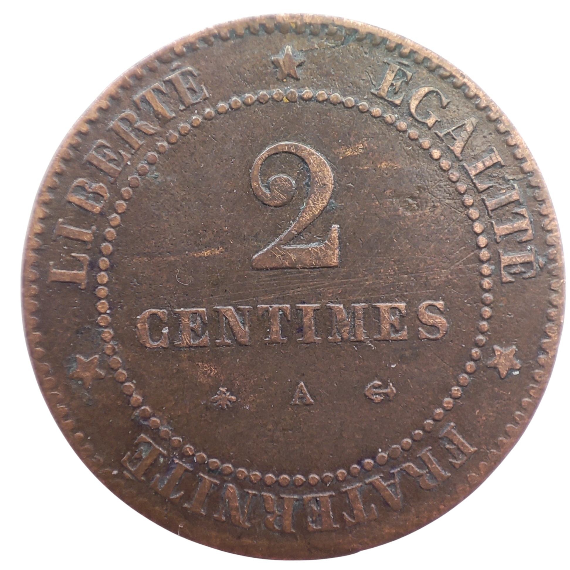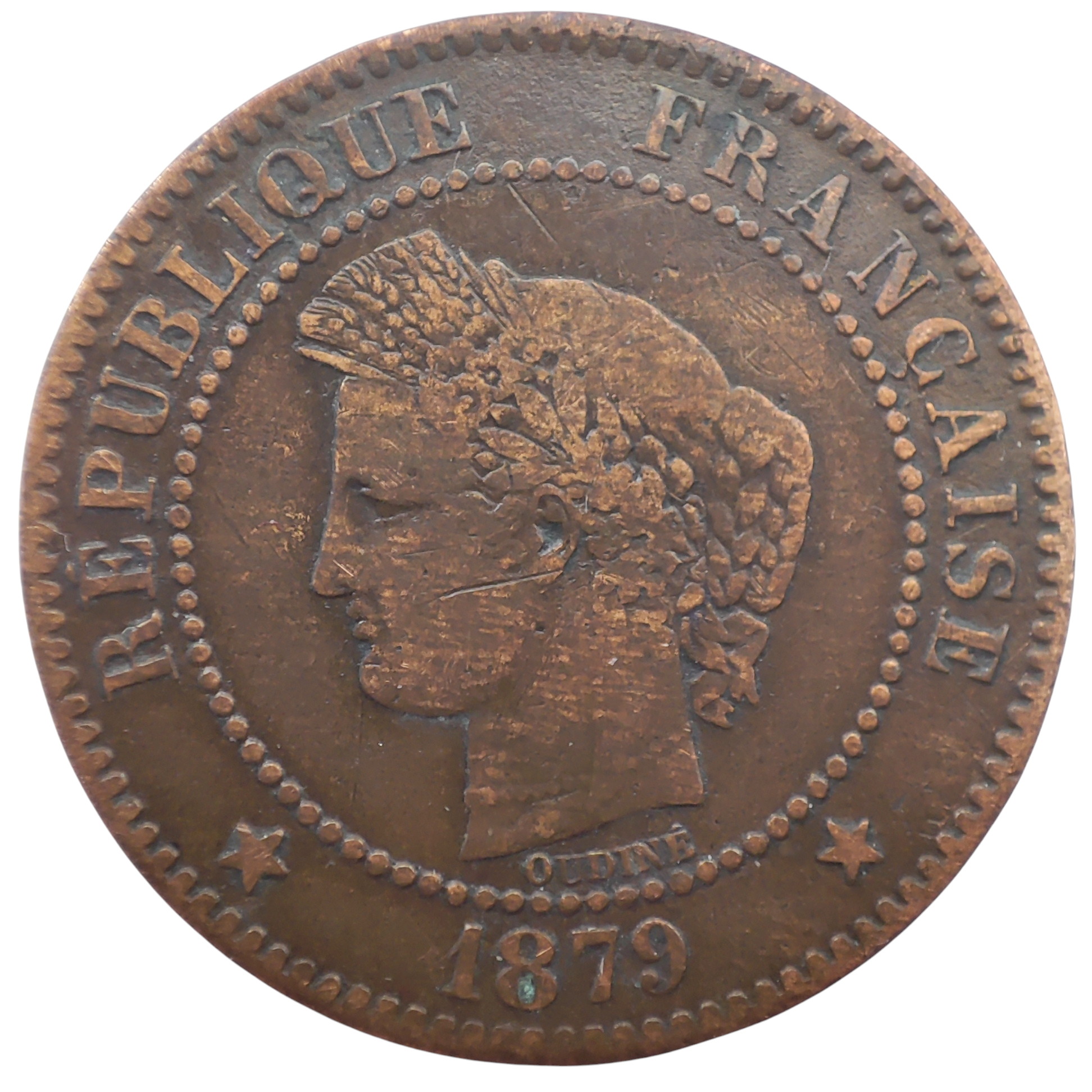1879 France 2 Centimes, Paris Mint